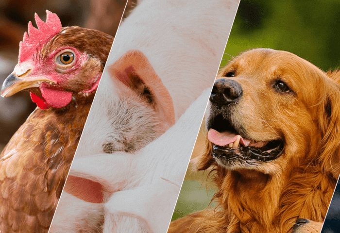 Aves, suínos, pescados, animais domésticos e não ruminantes.